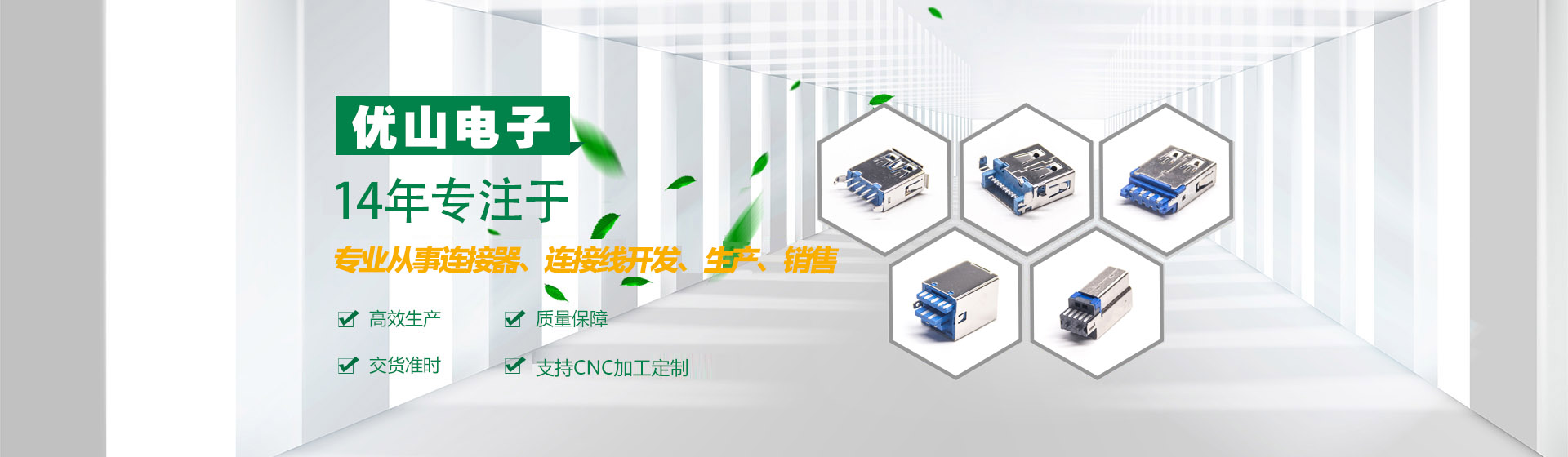 東莞市優山電子科技有限公司成立于2005年10月,是一家專業從事連接器、連接線開發、生產、銷售的獨資企業(東莞USB3.0插口,3.0USB廠家,Micro3.0USB插口,USB3.0接口生產廠,國內USB連接器廠),產品符合歐盟ROHS環保標準,廣泛用于存儲硬盤,播放器,汽車,電腦,通訊,數碼相機等。